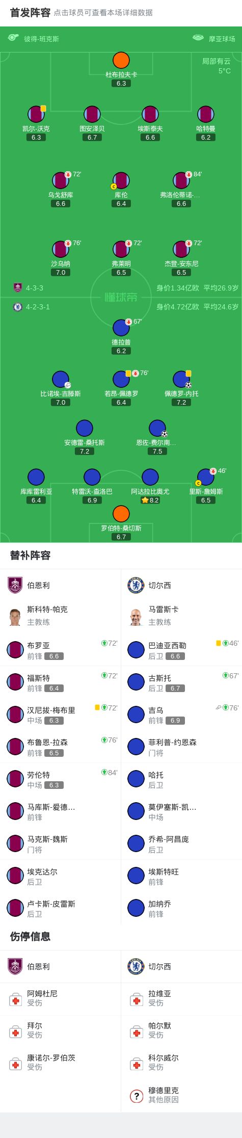 第46分钟,里斯-詹姆斯半场被换下,巴迪亚西勒替补登场