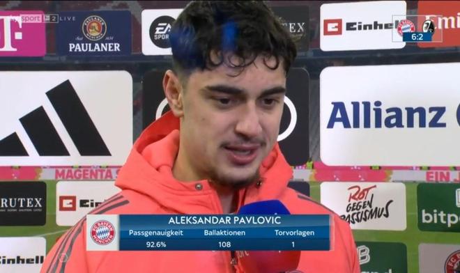 当地时间11月22日,拜仁慕尼黑在德甲中以6-2的比分战胜弗赖堡。赛后,拜仁慕尼黑球员帕夫洛维奇接受了采访。